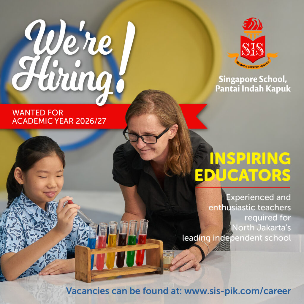 Singapore School, Pantai Indah Kapuk, Jakarta seeks an enthusiastic, creative and dynamic teacher of the highest quality to join our successful team. We are a successful, happy and nurturing school committed to providing the highest quality standards of educational opportunities for every student. Academic standards are high, and our graduates go on to take places at the world’s top universities. Our High School follows the Cambridge IGCSE, Pearson BTEC and International Baccalaureate Diploma Programme.